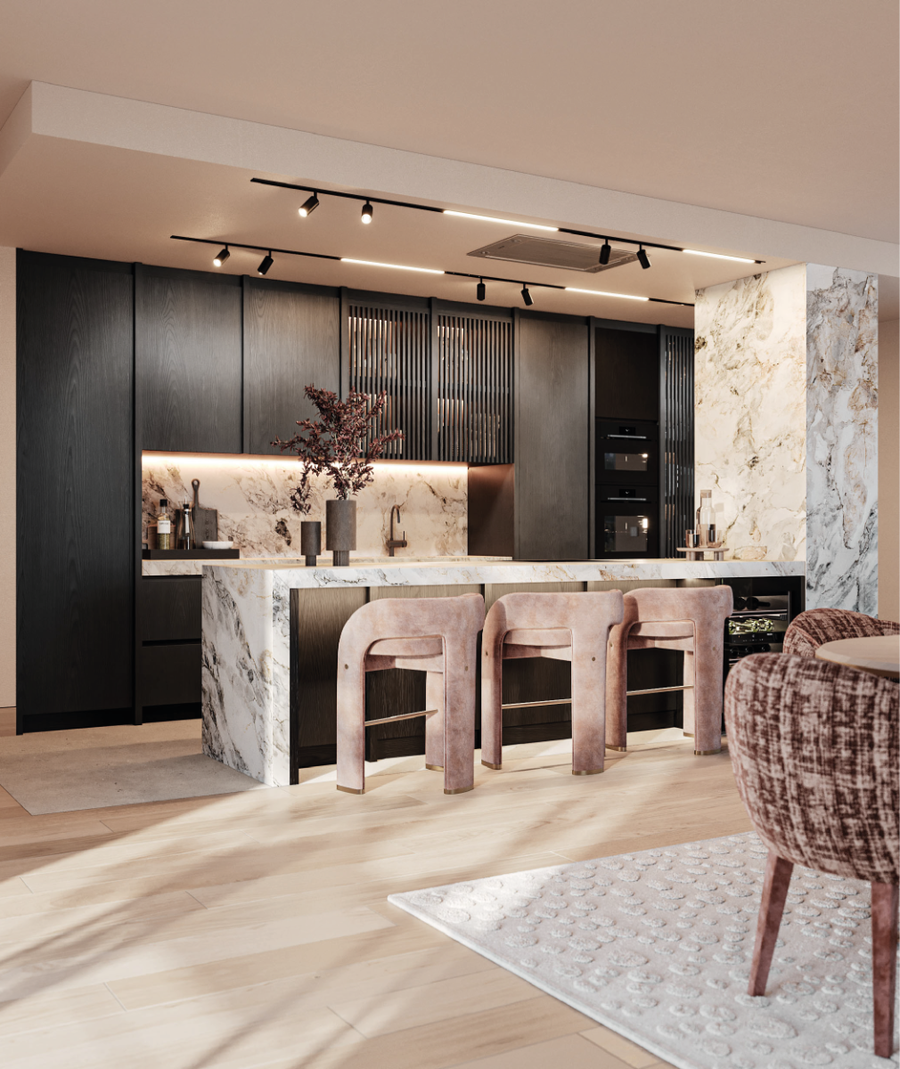 AM Living's Tailor-Made Cabinetry Collection transforms dreams into reality, providing fully customizable and enduring designs for kitchens,